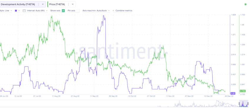 De ontwikkelingsactiviteit binnen het Theta Network piekte in september 2022. De koers reageerde echter niet hetzelfde.