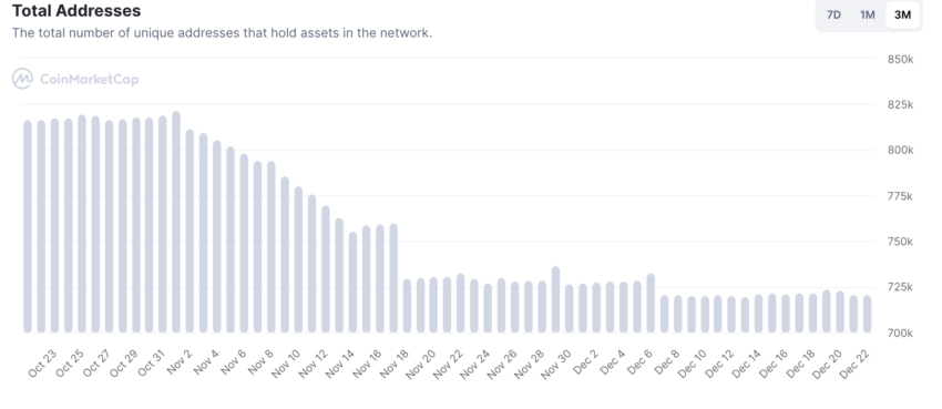 Het totaal aantal ZEC adressen is sinds de highs van oktober 2022 gedaald. De accumulatie moet aantrekken om de koers sterk te maken.