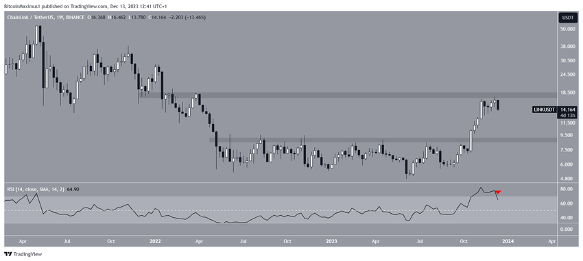 De Chainlink (LINK) koers bereikte op 8 december een nieuwe jaarlijkse high van $17,32. Echter is het sindsdien gedaald.