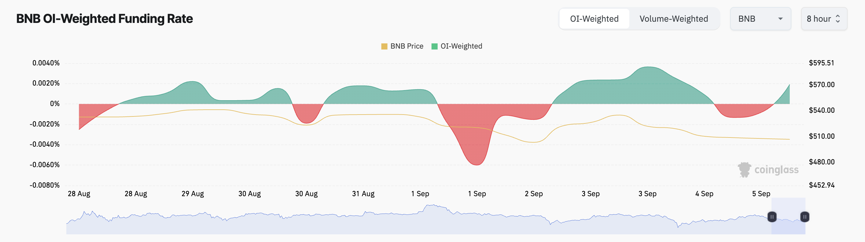 In het geval van BNB tonen de overwegend positieve funding rates van de afgelopen dagen aan dat handelaren de voorkeur geven aan longposities, zelfs nu de coin probeert zijn huidige neerwaartse trend voort te zetten.