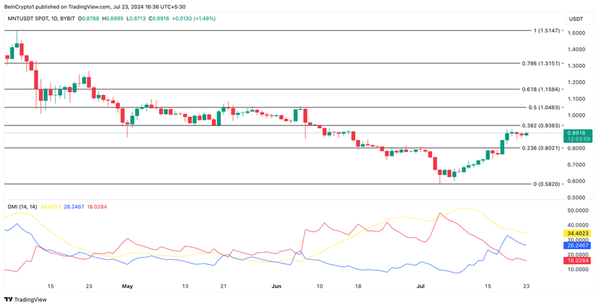Als de trend echter verschuift naar meer tokenaccumulatie, kan MNT zijn huidige rally verlengen en handelen tegen $ 0,93.