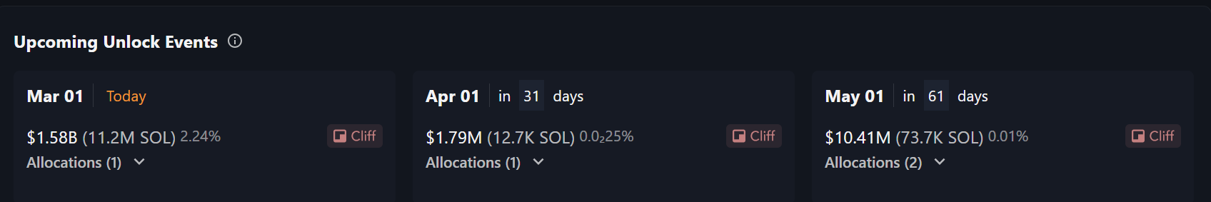 Toch heeft de FTX-boedel nog twee extra kleinere SOL unlocks in de komende maanden. Op 1 april worden 12.700 SOL vrijgegeven, gevolgd door 73.700 SOL op 1 mei.