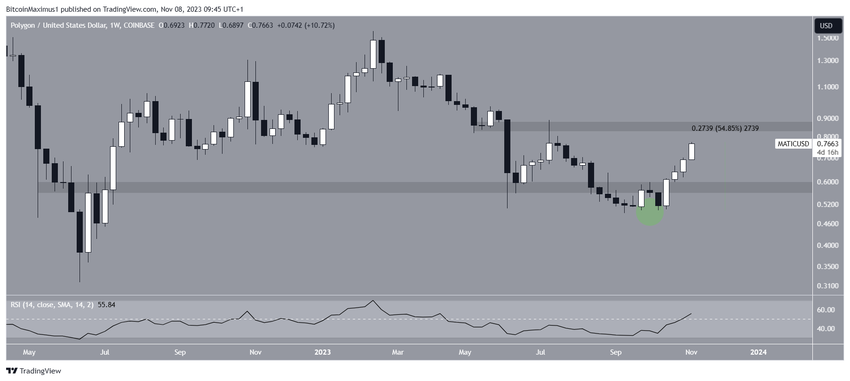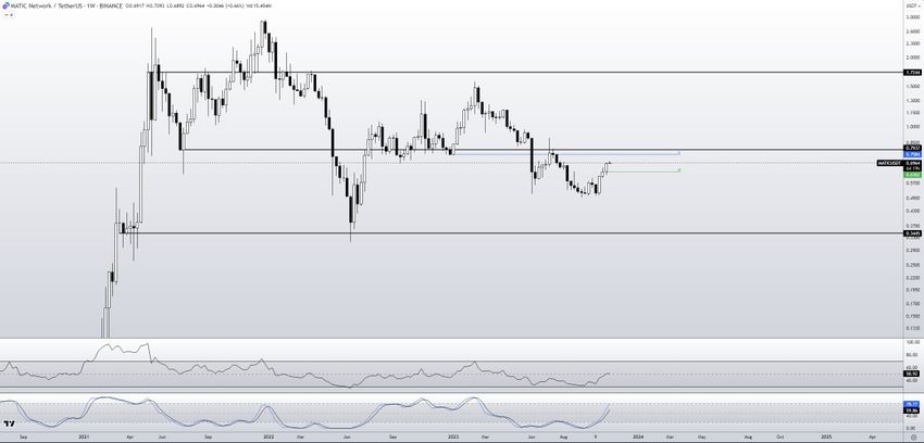 De technische analyse op het wekelijks tijdframe laat zien dat de Polygon crypto koers de afgelopen vier weken is gestegen. Deze opwaartse beweging heeft ertoe geleid dat de koers het $0,60-niveau heeft heroverd.