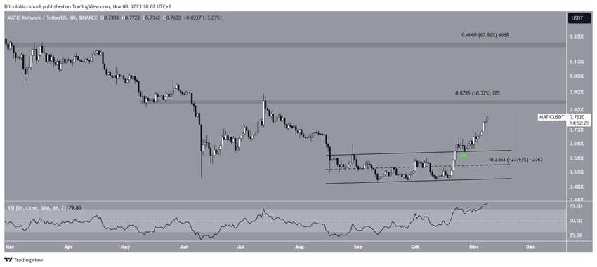De Polygon (MATIC) koers is gestegen sinds het valideren van een stijgend parallelkanaal. Dit gebeurde op 27 oktober.