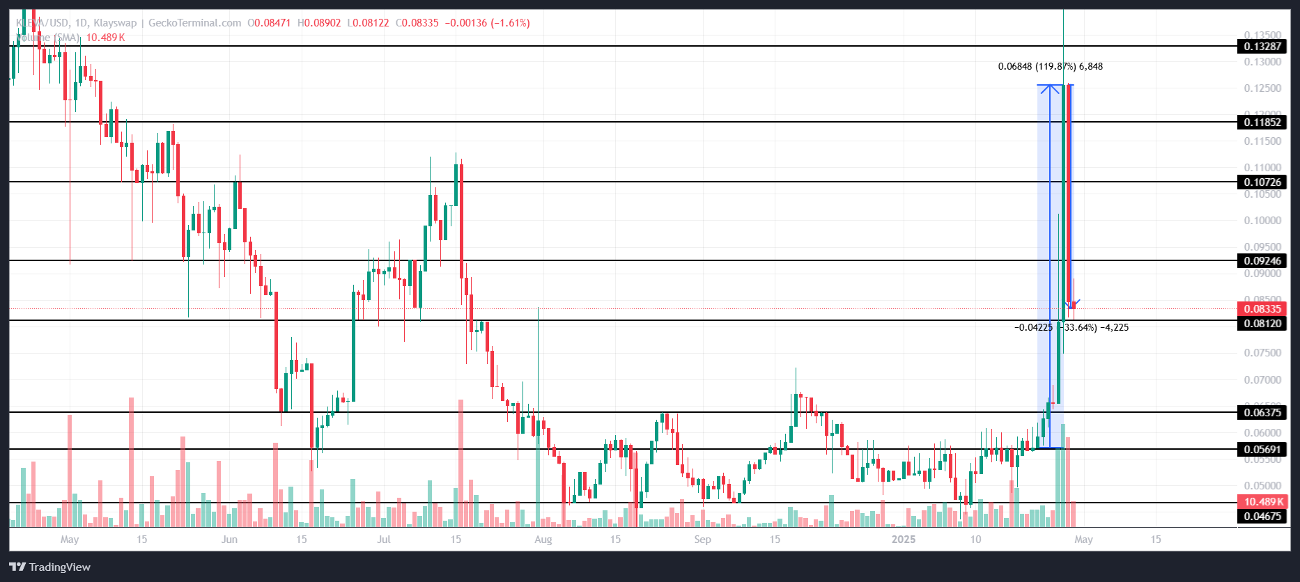 De recente daling heeft KLEVA laten zakken van $0,125 naar $0,083, waarbij de altcoin momenteel boven het cruciale $0,081 steunniveau blijft. Als KLEVA erin slaagt om van deze steun te herstellen, kan het proberen te herstellen door de $0,092-weerstand te doorbreken. Het succesvol passeren van dit niveau zou een mogelijke rally signaleren.