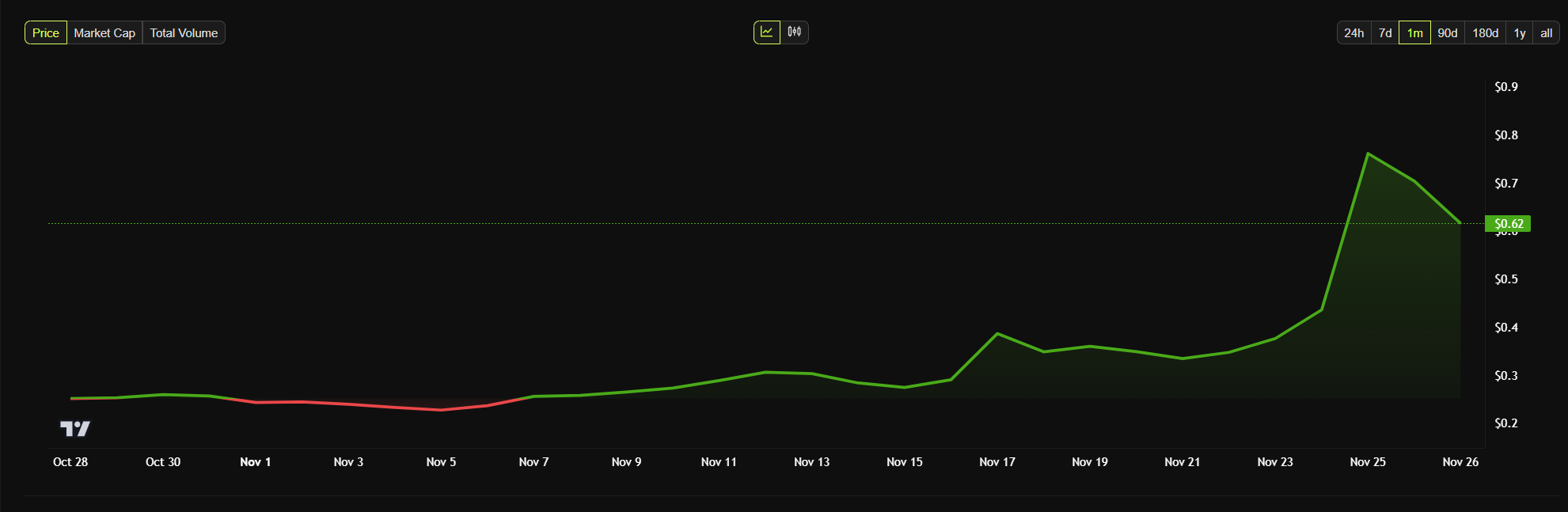 Deze ontwikkelingen zorgden voor toenemende betrokkenheid bij het metaverse-platform, wat werd weerspiegeld in de marktprestatie van MANA. De token steeg met bijna 100% in november en bereikte zijn hoogste koers in meer dan zes maanden.