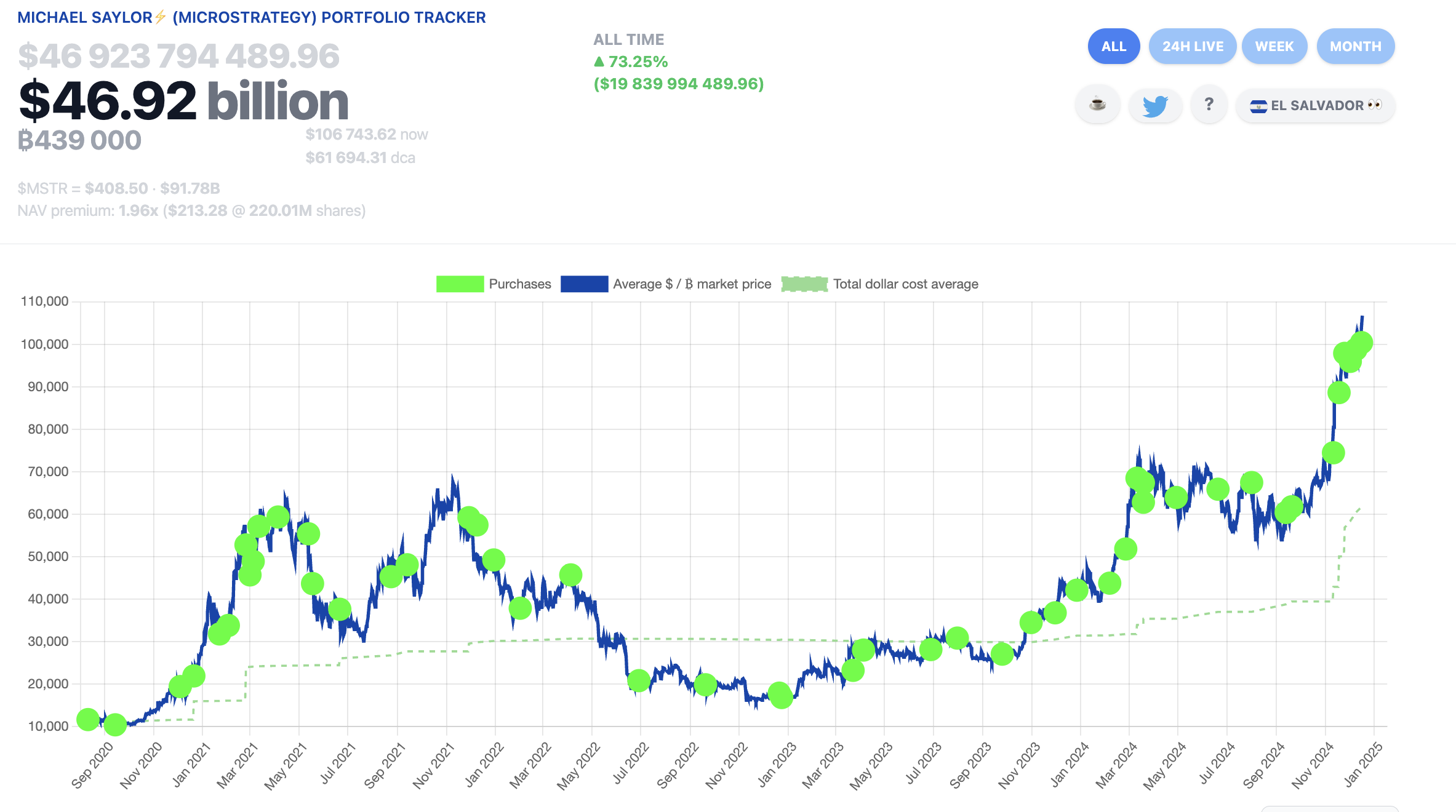 Met een opmerkelijk bezit van 439.000 Bitcoin, ter waarde van ongeveer $46,92 miljard, bezit het bedrijf nu meer dan 2% van de totale Bitcoin-voorraad.