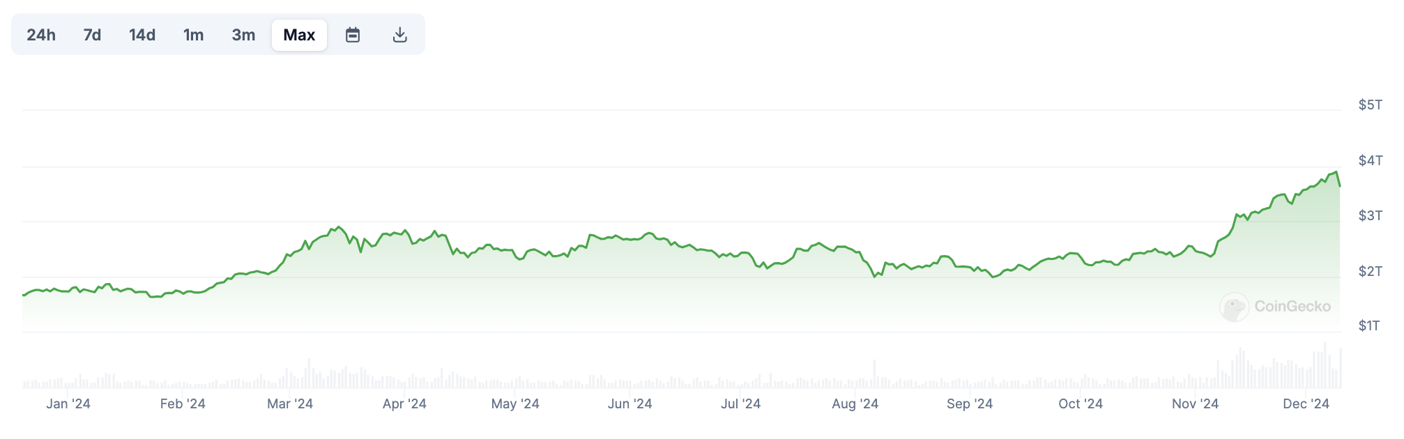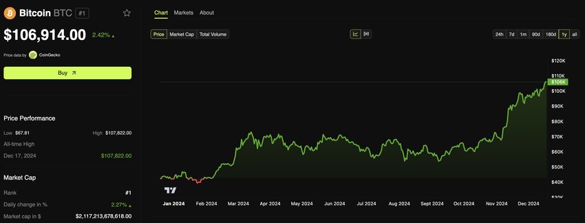 Deze stijging werd ten minste gedeeltelijk aangewakkerd door optimisme rond de benoeming van Paul Atkins, een pro-crypto figuur, als de aankomende SEC-voorzitter onder president-elect Donald Trump. De bredere cryptomarktwaarde is in 2024 bijna verdubbeld, van $1,6 biljoen in januari naar meer dan $3,8 biljoen.