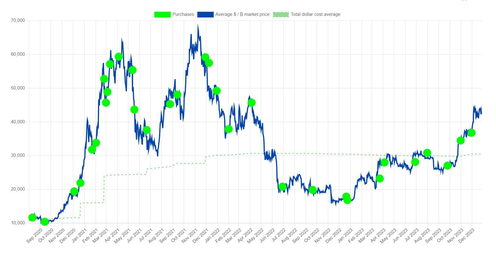 Bovendien is het bedrijf niet van plan om zijn Bitcoin-accumulatie af te remmen. In november deed het zijn grootste aankoop sinds 2021 met nog eens 16.130 BTC voor ongeveer $593 miljoen.