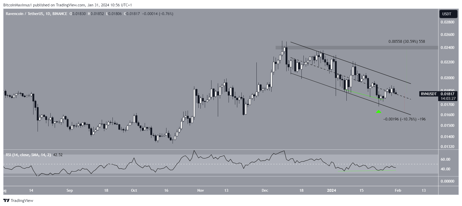 Sponsored SponsoredOp 23 januari liet RVN een bounce op de steunlijn van het kanaal (groene pijl) zien en is sindsdien gestegen. De dagelijkse RSI genereerde tijdens de bounce een bullish divergentie, wat de opwaartse beweging ondersteunt. Als RVN uitbreekt, kan het met 30% naar de volgende weerstand op $0,024 stijgen.