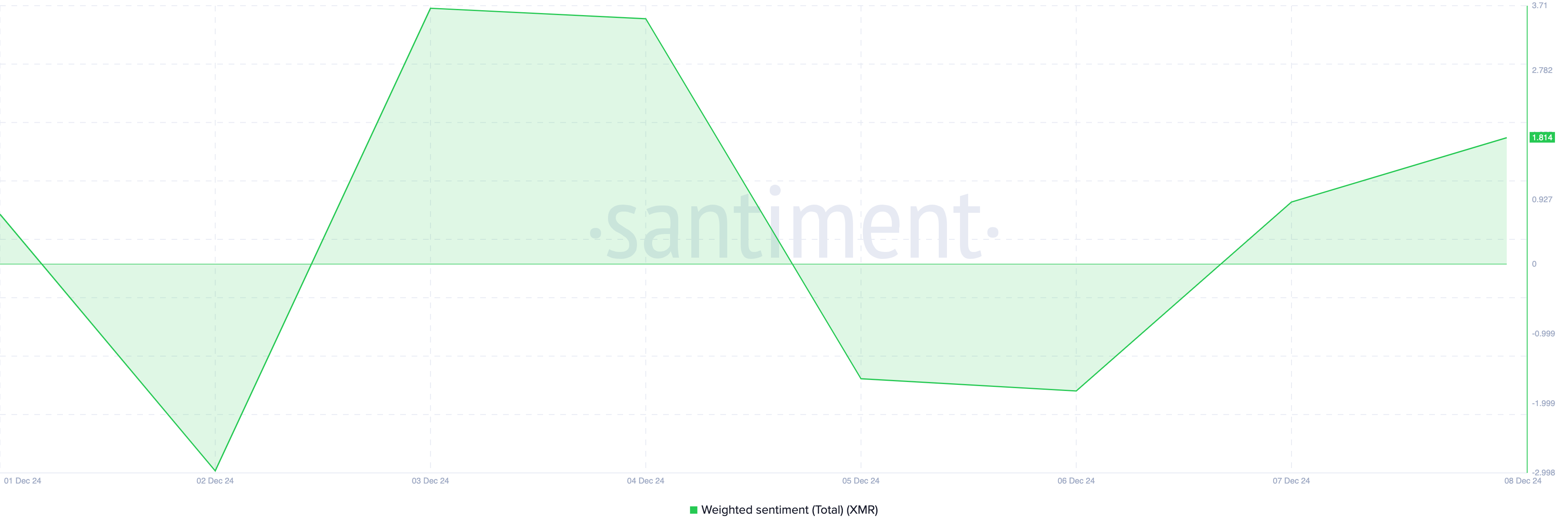 Aan de andere kant, een negatieve meting geeft aan dat het gemiddelde sentiment rond het asset bearish is. Gezien de positieve sentimentmeting voor XMR, suggereert dit dat groeiend optimisme de vraag naar de altcoin zou kunnen verhogen.