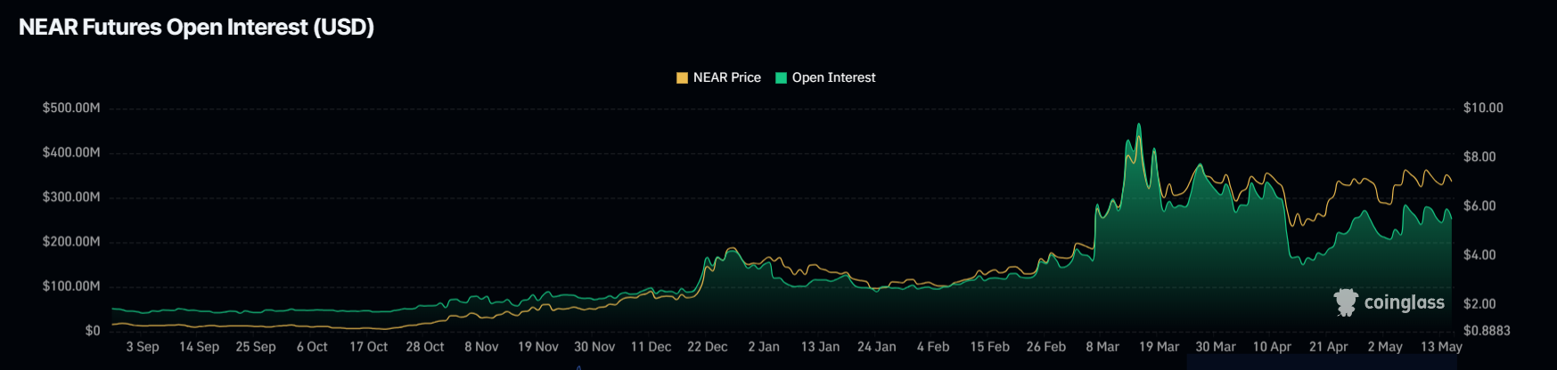 De NEAR koers ziet bullish signalen van de traders die al bijna een maand anticiperen op een koersstijging. De stijging in Open Interest laat zien dat er de afgelopen maand voor meer dan $100 miljoen aan contracten is geopend.