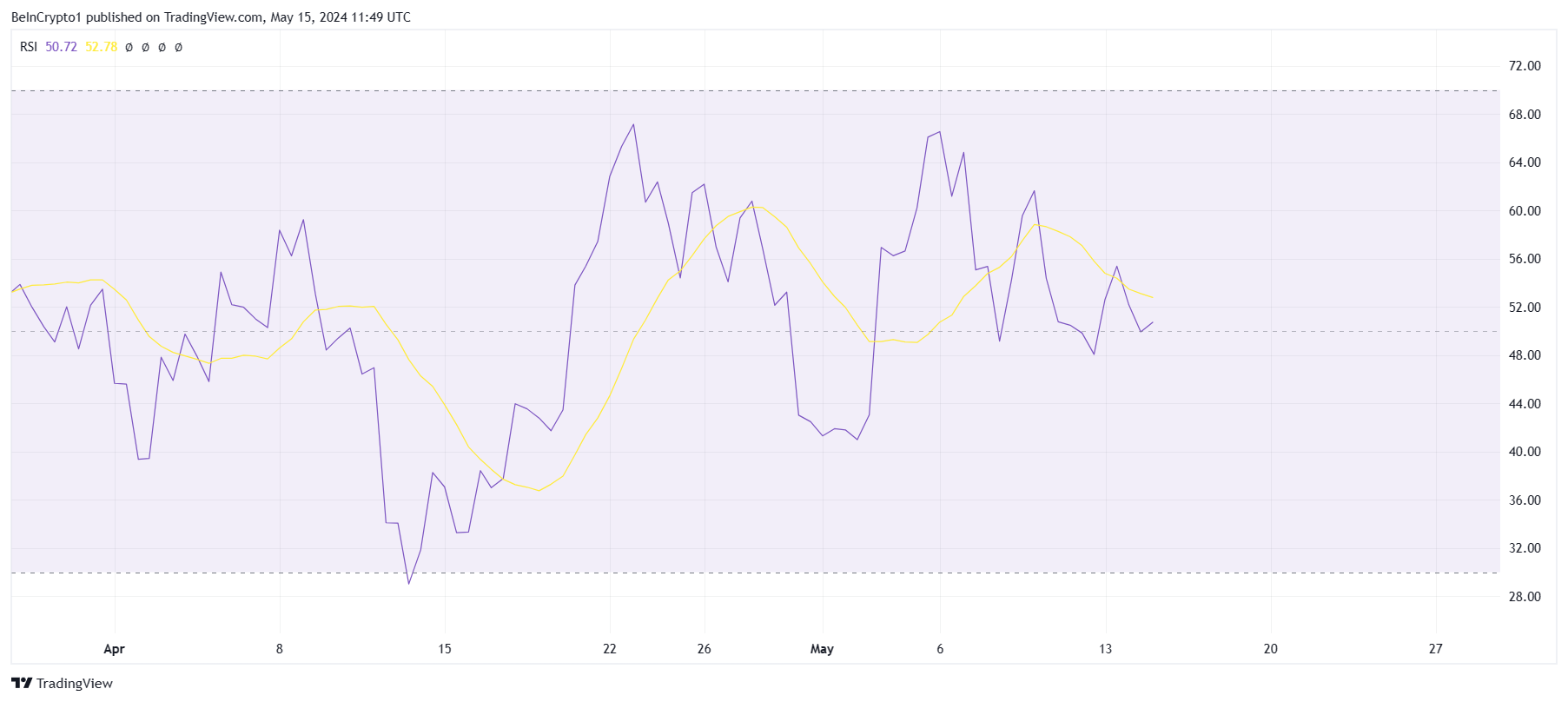 Ten tweede merkt de altcoin ook steun op van de bredere markt, wat duidelijk wordt in de Relative Strength Index (RSI). RSI is een momentum indicator die de snelheid en verandering van koersbewegingen meet en overbought of oversold-condities in een asset aangeeft.