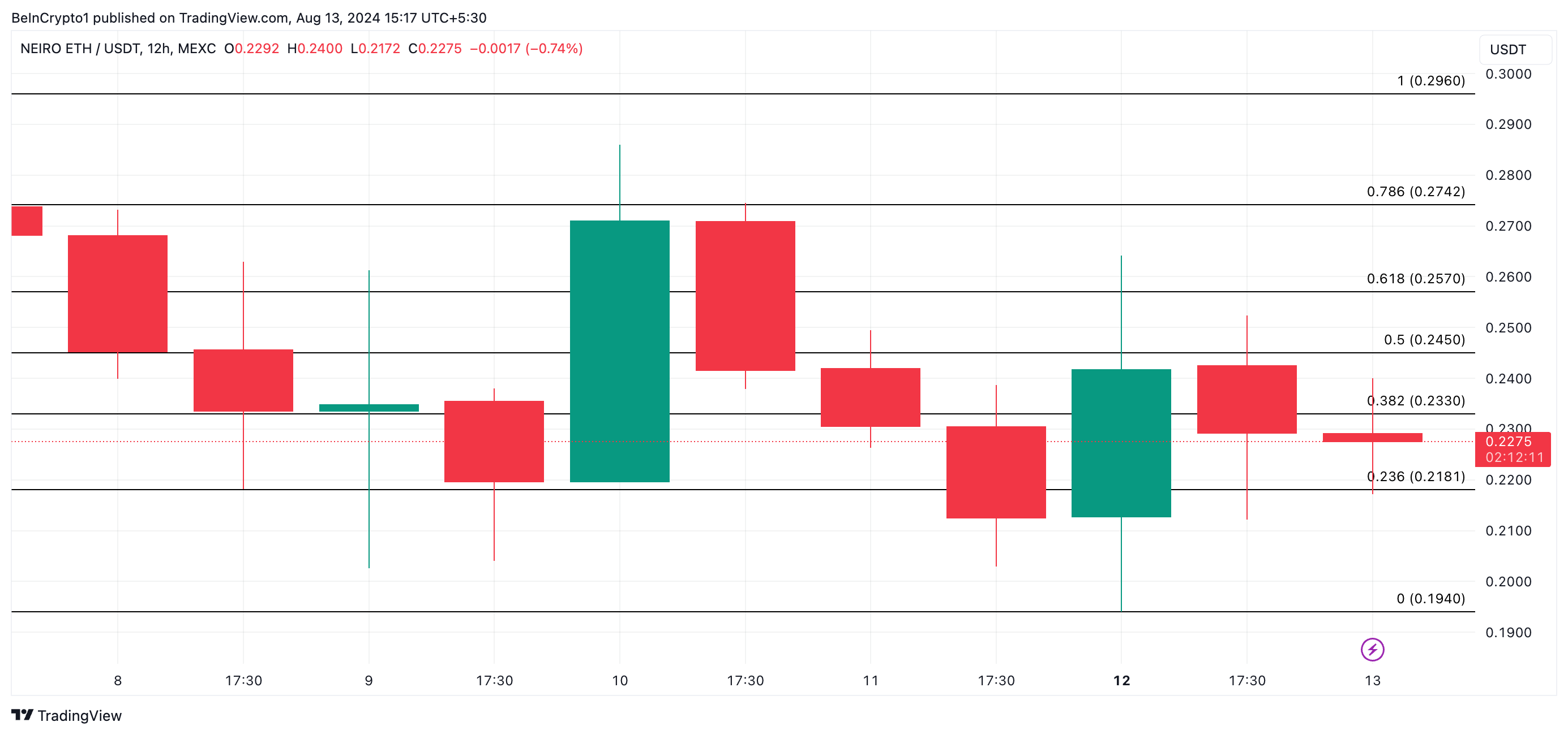 Echter, als meer handelaren beginnen met het accumuleren van de altcoin en de koopdruk toeneemt, kan de prijs van NEIRO stijgen naar $0,24.