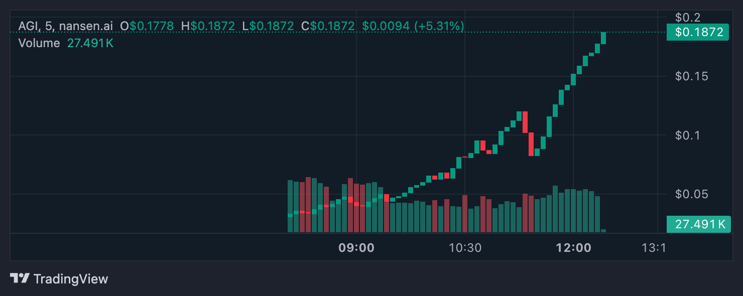 AGI is snel een van de snelst groeiende nieuwe PumpFun tokens geworden, minder dan 24 uur geleden gelanceerd en al een marktkapitalisatie van $197 miljoen bereikt.