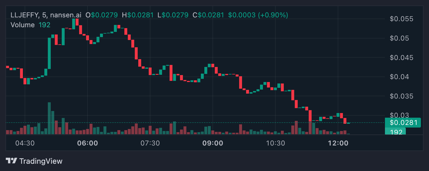 Dit leidde tot speculatie totdat Daniele Sesta bevestigde dat Jeffy nog leefde. Jeffy zei later dat hij zijn verdwijning in scène had gezet vanwege intimidatie en online haat. Sindsdien heeft LLJEFFY aan populariteit gewonnen—nu met meer dan 6.800 houders, 83.000+ dagelijkse transacties en bijna $29 miljoen in dagelijks volume.