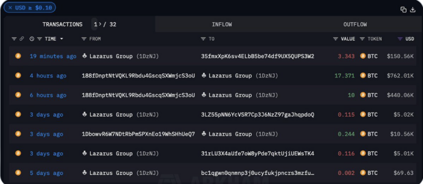 Het Noord-Koreaanse hackerscollectief dat bekend staat als Lazarus Group heeft naar verluidt zijn sterkste transacties in meer dan een maand gedaan, door meer dan $1 miljoen aan Bitcoin op te nemen via een cryptomixer.