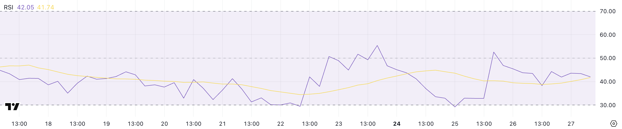 Een RSI tussen 30 en 70 duidt meestal op een neutrale trend zonder sterke richting.