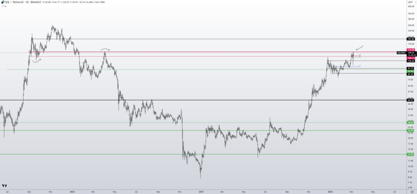 Skew merkte op dat het belangrijk is dat Solana in staat is om de $142 grens te overschrijden. Deze stap zou een signaal zijn voor een stijgende trend. Het zou ook de waarde van SOL naar nieuwe highs kunnen katapulteren, mogelijk naar $191.