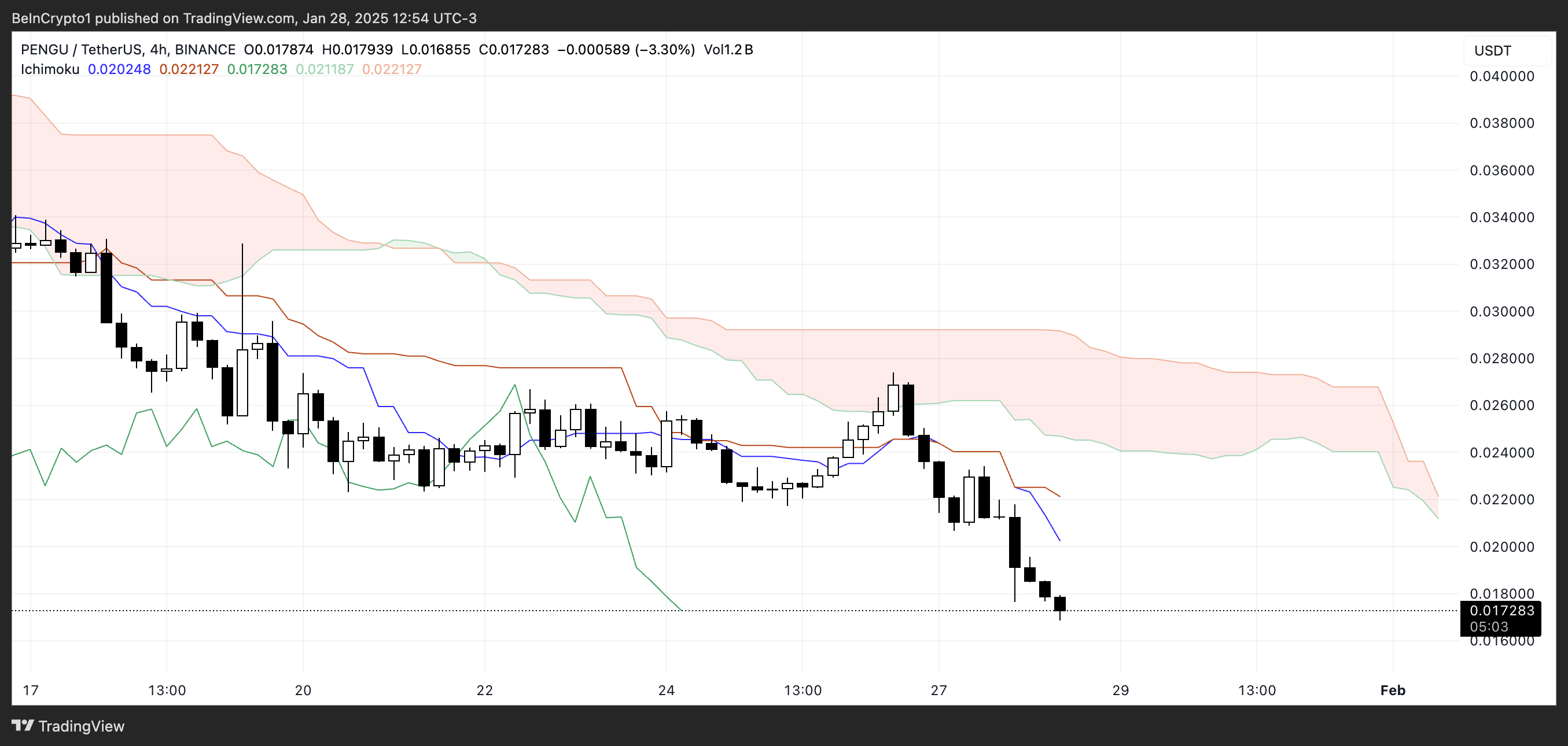 SponsoredPENGU Ichimoku Cloud toont een bearish setup