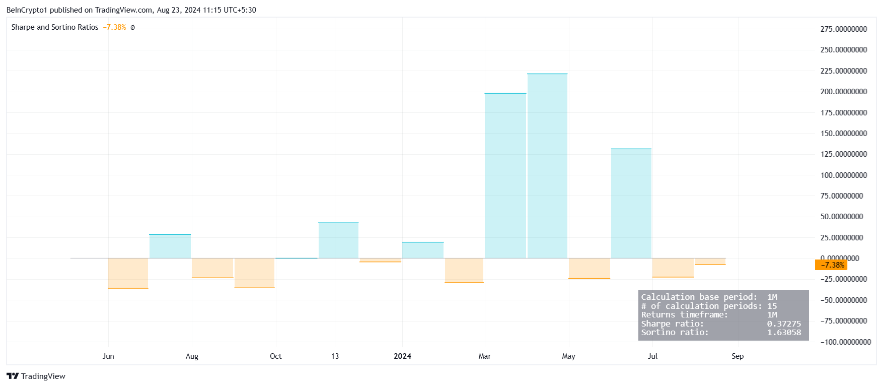 De Sharpe Ratio van de PEPE meme coin staat momenteel op 0,3. Hoewel positief, is dit cijfer relatief laag, wat aangeeft dat de rendementen van de coin niet bijzonder sterk zijn in verhouding tot de risico’s. Dit suggereert dat investeerders mogelijk niet voldoende worden gecompenseerd voor het risico dat ze nemen met PEPE.