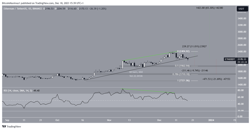 De koers van Ethereum (ETH) is gedaald sinds de jaarlijkse high van $2.403 op 9 december.
