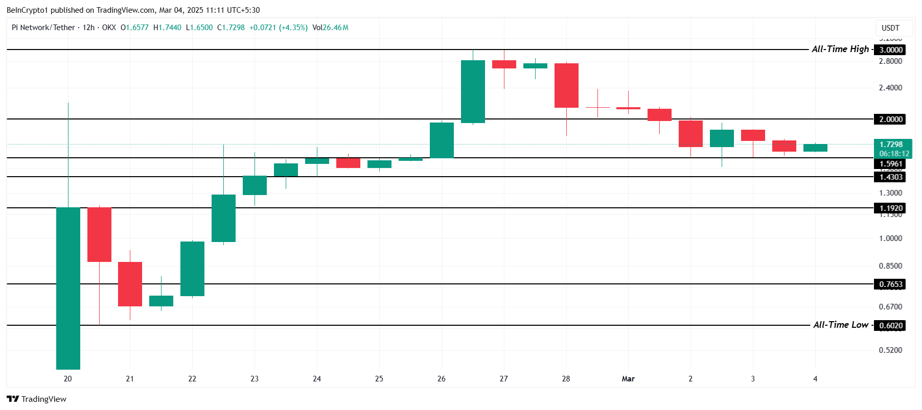 Aan de andere kant, als bearish druk de overhand krijgt, kan Pi Coin zijn steun van $1,59 verliezen. Een daling onder dit niveau kan PI richting $1,43 of zelfs $1,19 sturen, waardoor de bullish verwachting ongeldig wordt. Dit zou wijzen op een langdurige correctie, waardoor een mogelijk herstel wordt vertraagd.