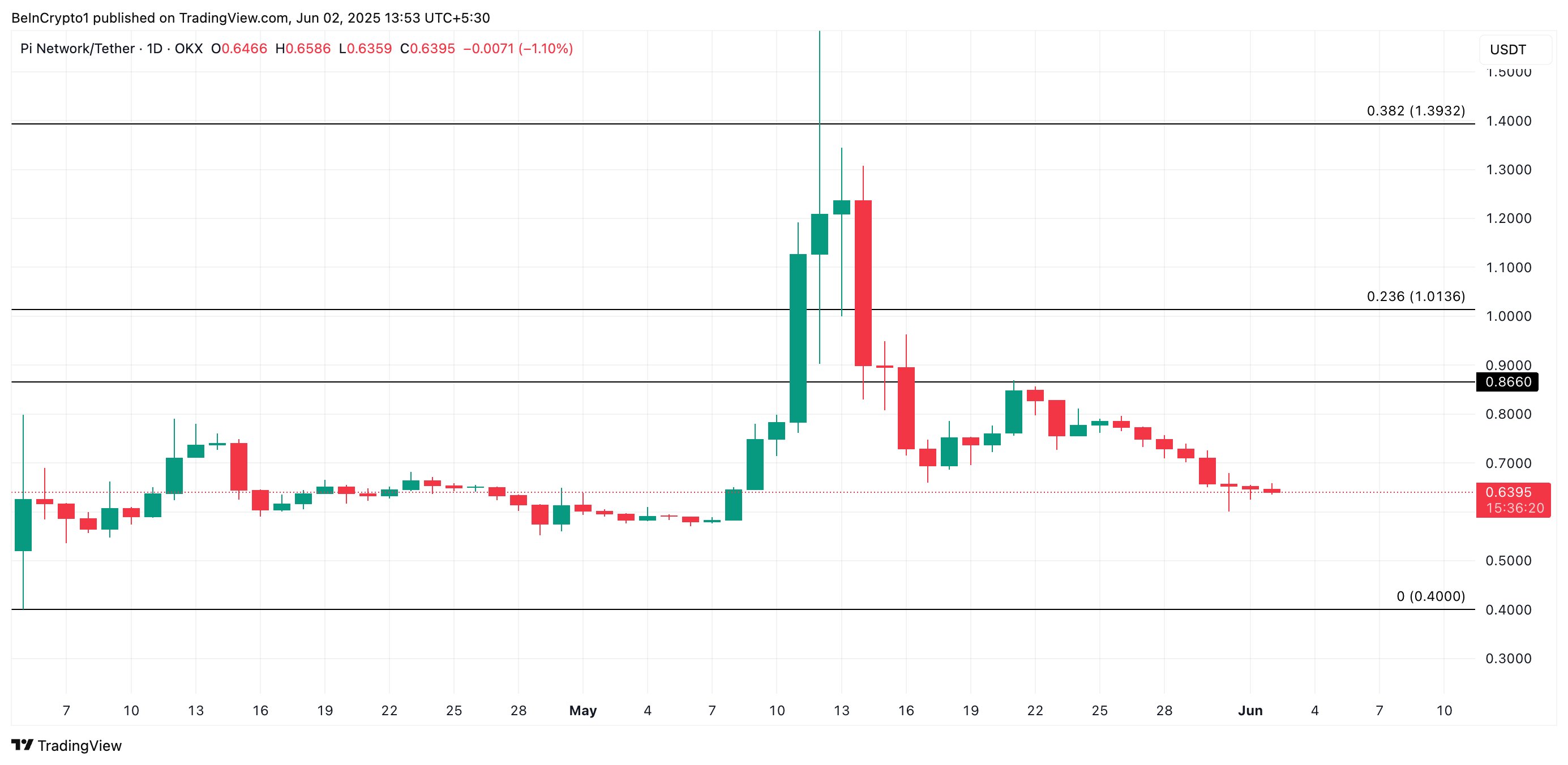 Op het moment van schrijven handelt PI op $0,63. Met toenemende verkoopdruk zouden PI-bears de koers richting de all-time low van $0,40 kunnen duwen.