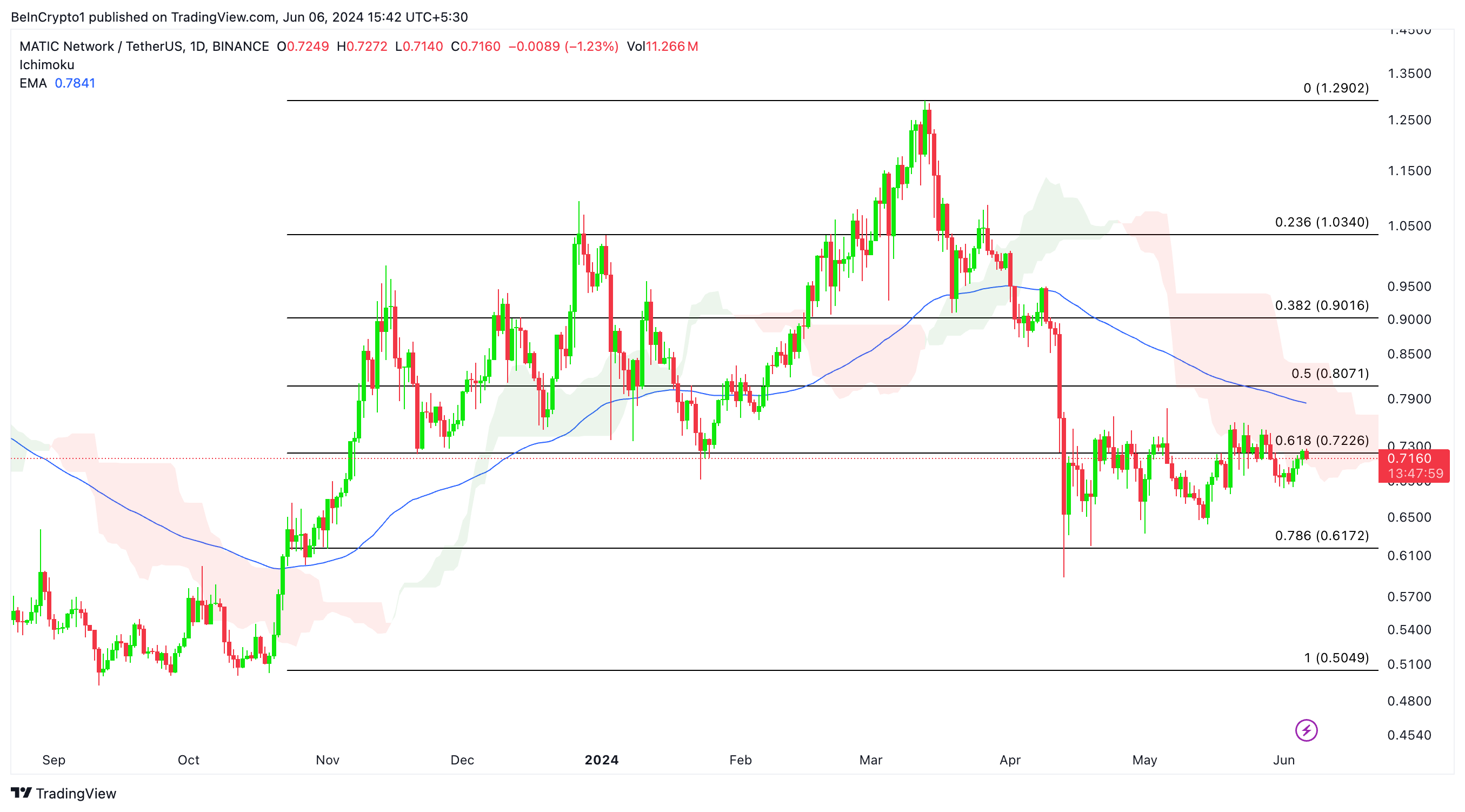 De koers van Polygon heeft dit niveau getest en een aanhoudende breakout boven het 0,618 Fibonacci-niveau zou de koers hoger kunnen duwen.