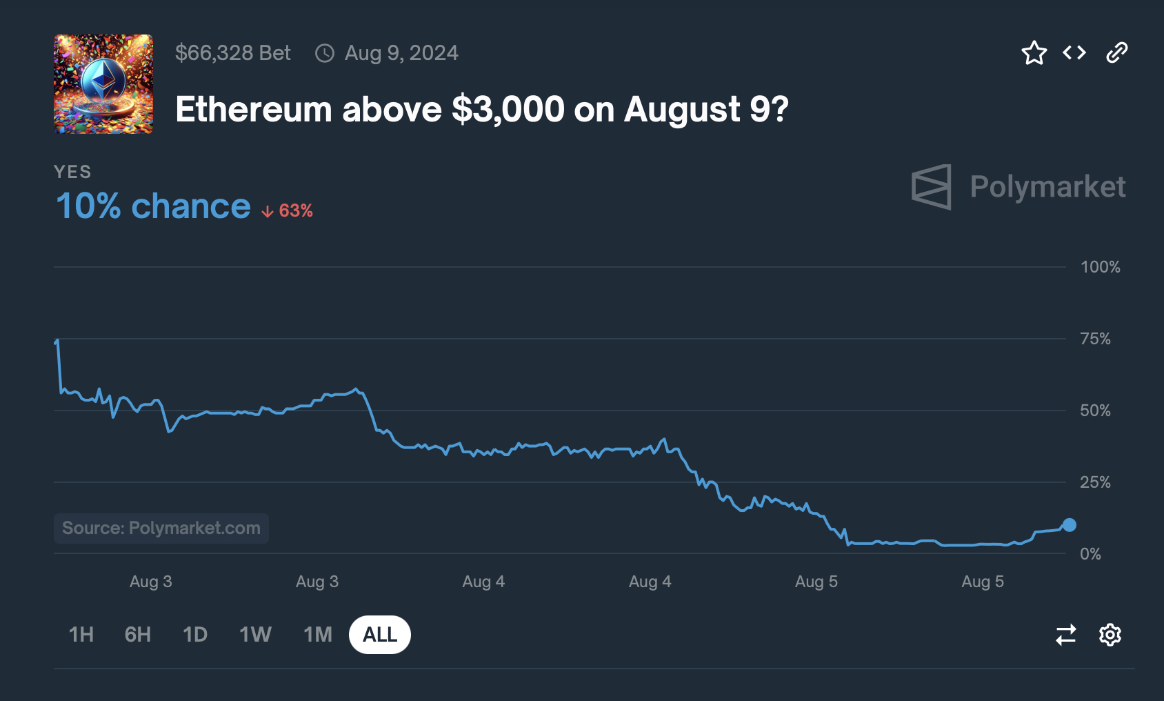 Onder hen, de kansen dat de Bitcoin (BTC) koers onder $45,000 zakt voor september en Ethereum (ETH) boven $3,000 herwint op 9 augustus. BeInCrypto-gegevens tonen aan dat op dit moment BTC handelt op $53,625, terwijl ETH onder $2,400 blijft.