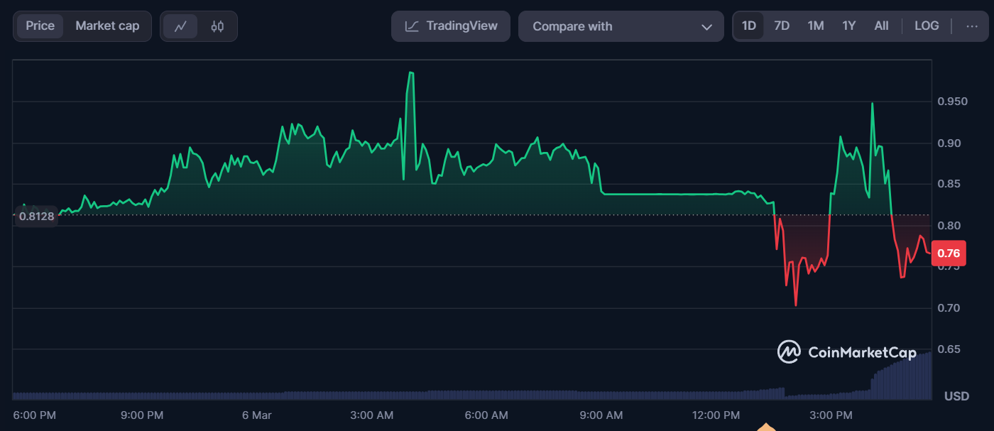 Volgens gegevens van zowel CoinGecko als CoinMarketCap lanceerde RED vandaag op $0,80. Hoewel het kort steeg naar $0,98 na de herlisting aankondiging van Binance, heeft het de dollargrens nog niet bereikt.
