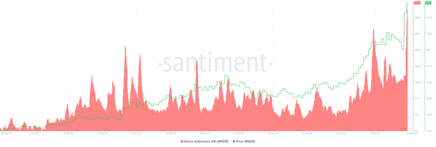 Aan de andere kant, als whales ervan afzien om hun holdings te verkopen, zelfs nadat de bovengenoemde barrière is doorbroken, zou RNDR een kans kunnen hebben op een verdere stijging. Zoals het er nu voorstaat, is de participatie van investeerders ook op een all-time high, met actieve adressen die op het moment van schrijven 3.517 bereiken.