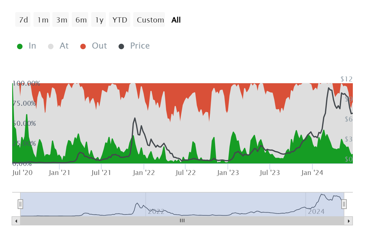 Maar als onvoorziene volatiliteit en/of bearish marktomstandigheden de Render koers onder de steun op $6,8 duwen, zou dit de bullish Render verwachting ontkrachten, wat zou resulteren in een dip naar $6,5 en lager.