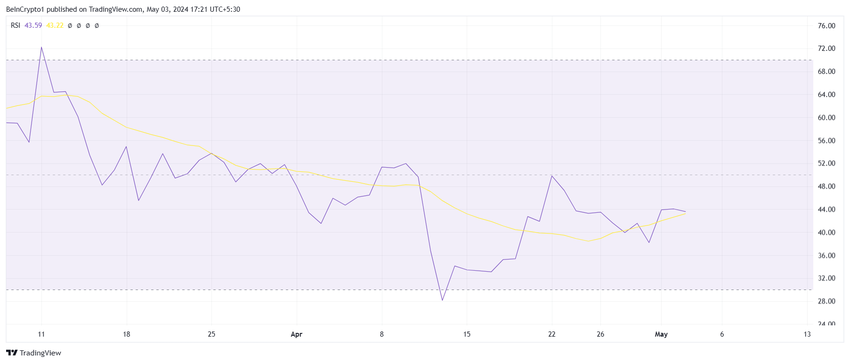 Tegelijkertijd vertoont de bredere markt ook bearishness, zoals te zien is in de Relative Strength Index (RSI). De RSI is een momentumoscillator die de snelheid en verandering van koersbewegingen meet. Het wordt gebruikt om overbought of oversold condities in een asset te identificeren.