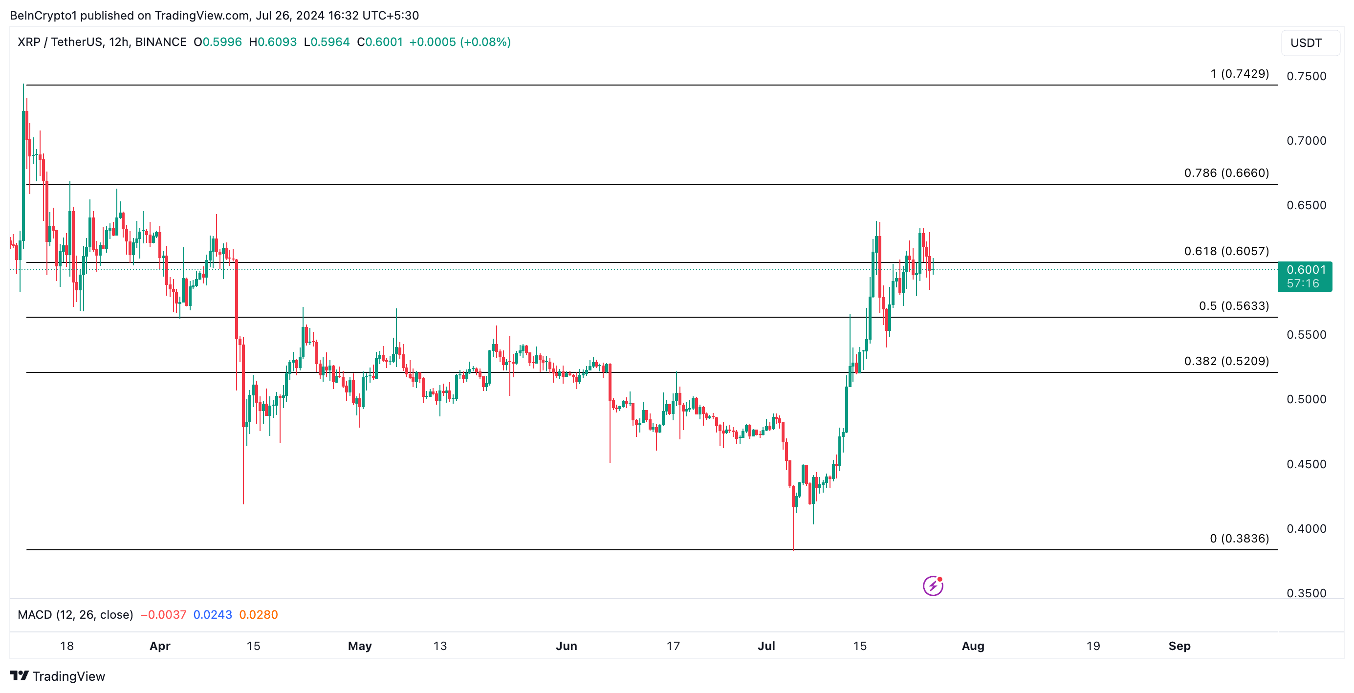 Op het moment van schrijven noteert XRP $0,60. De waarde is de afgelopen 24 uur met 1% gedaald en de trading volumes zijn in die periode met 14% gedaald.