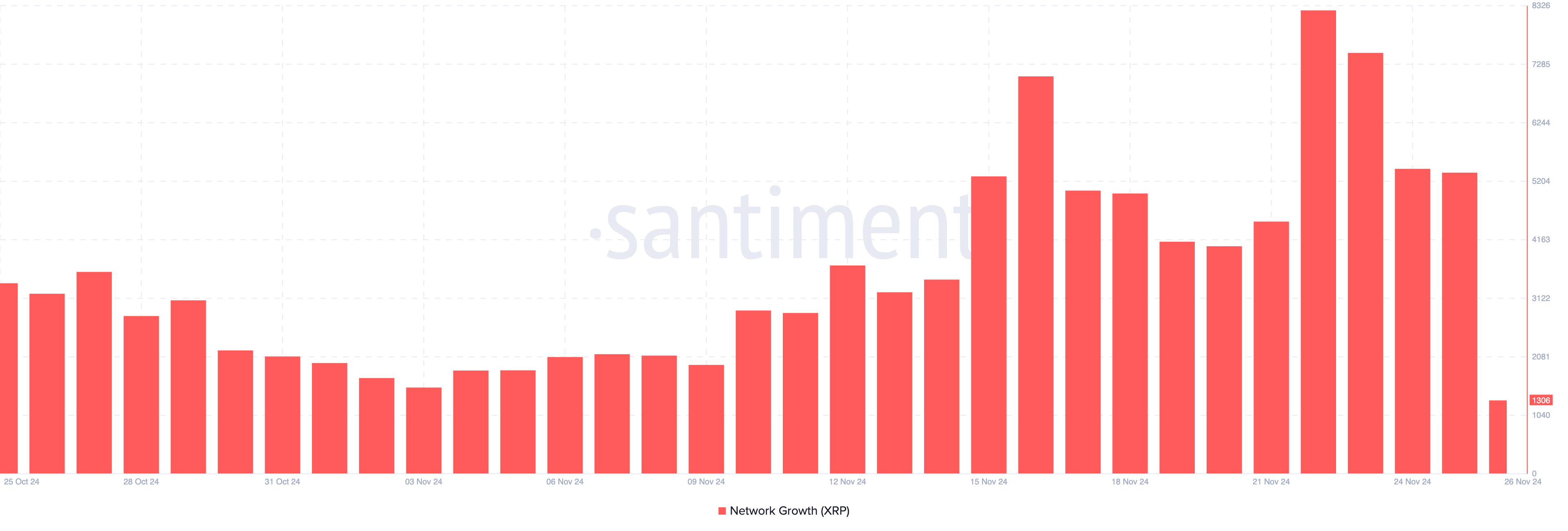 Bovendien suggereert de Network Growth metriek verder dat XRP verkopers de controle hebben. Network Growth volgt het aantal nieuwe adressen dat hun eerste succesvolle transactie op de blockchain maakt, wat inzicht geeft in de adoptie en markttrekkracht van de token.