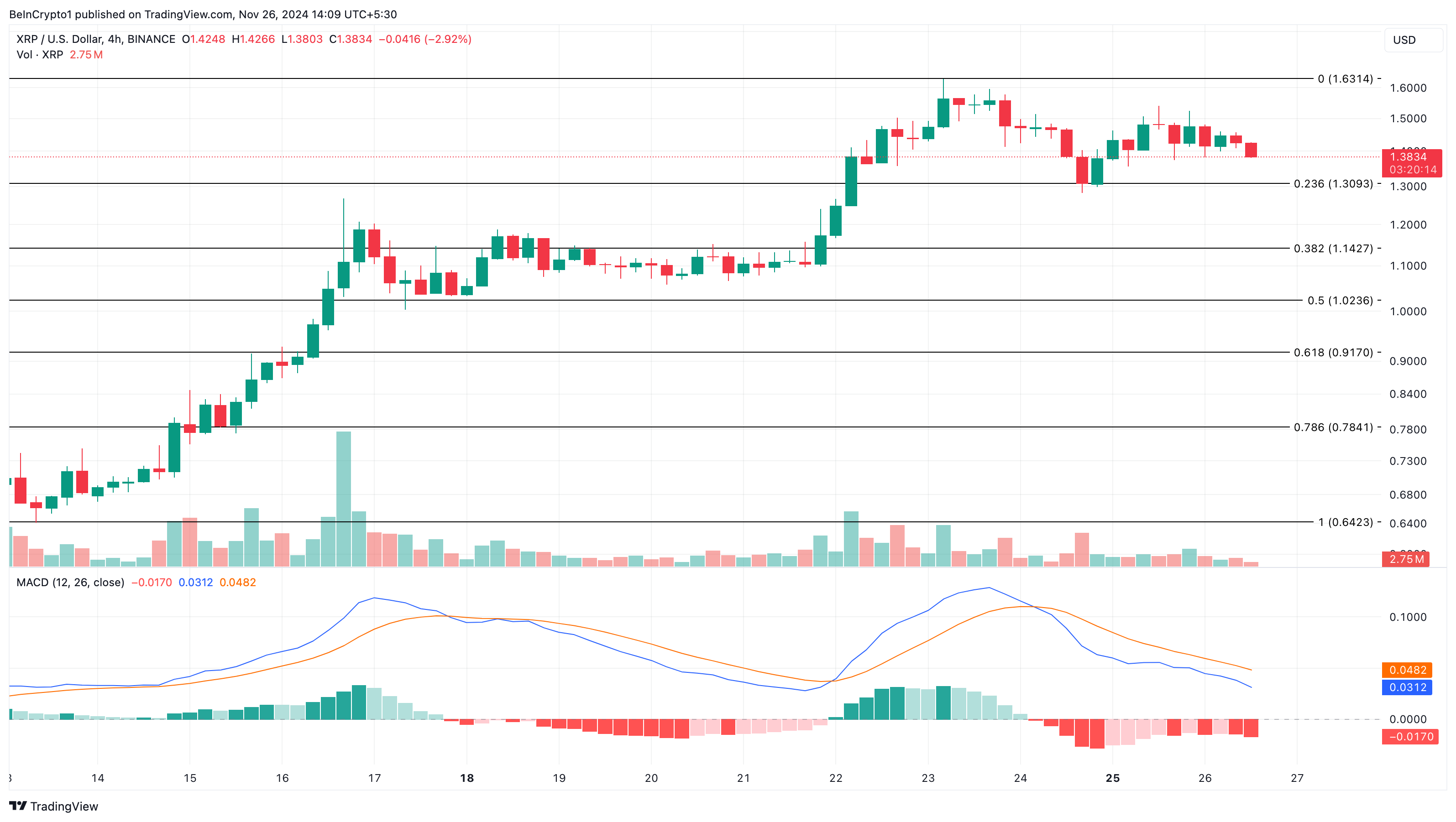 In de meeste gevallen, wanneer handelaren hun winsten verzilveren, zet dit neerwaartse druk op de koers. Daarom is het geen verrassing dat de XRP koers op het moment van schrijven is gedaald naar $1,42.