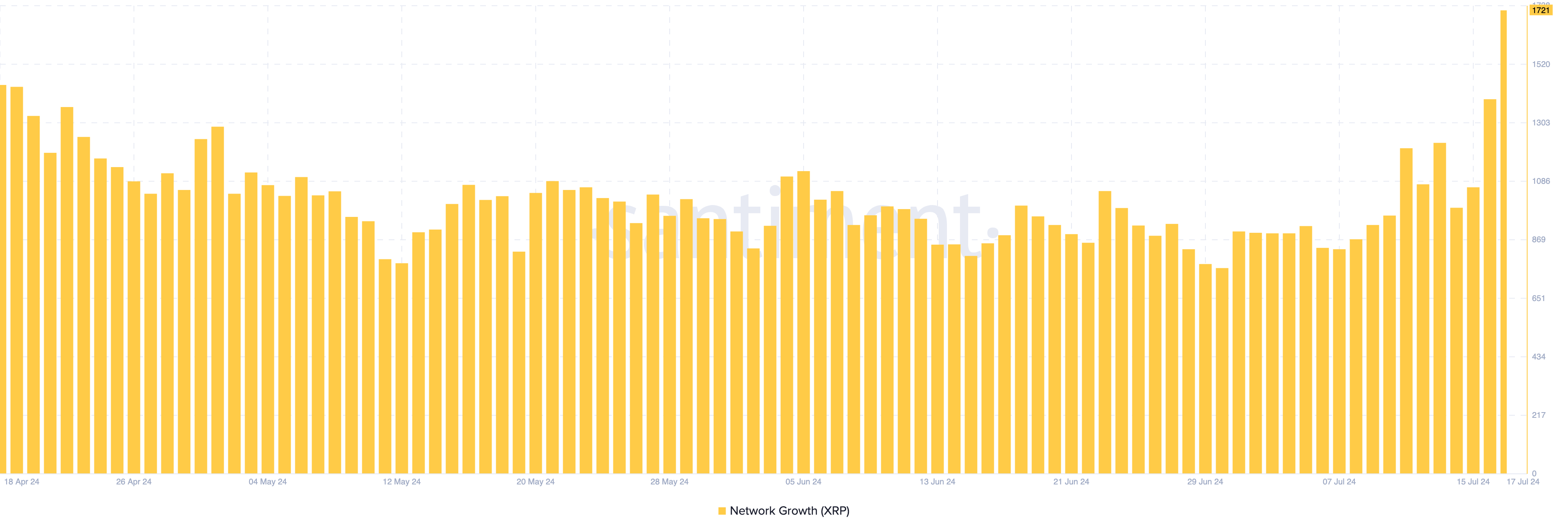 Informatie die is waargenomen op het XRP grootboek (XRPL) laat zien dat de netwerkgroei 1.721 heeft bereikt, wat duidt op een toename in de adoptie van de token en verbeterde tractie op het grootboek. Maar daar houdt het niet op.