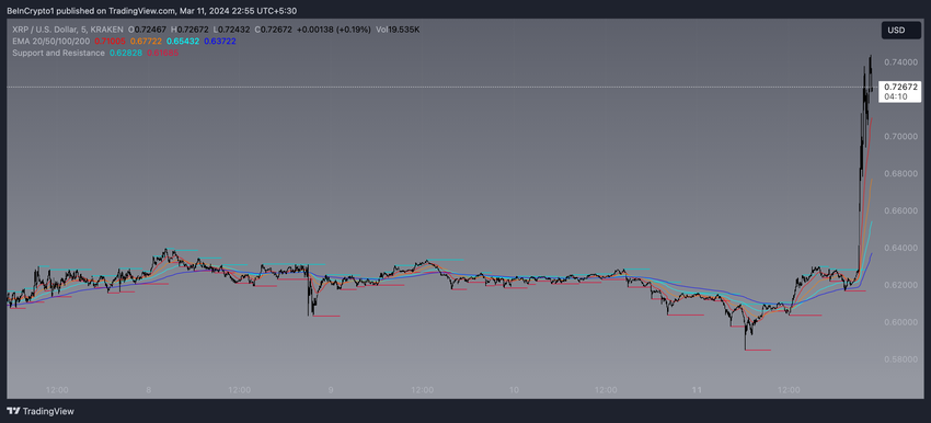 Als de koers van XRP boven het resistance-turned-support level blijft, zou dit kunnen wijzen op een voortzetting van de opwaartse trend. Als de koers echter onder dit niveau daalt, zou dit erop kunnen wijzen dat de breakout niet werd volgehouden en zou de koers kunnen terugvallen om lagere steunniveaus op $0,62, $0,60 of zelfs $0,58 te testen.