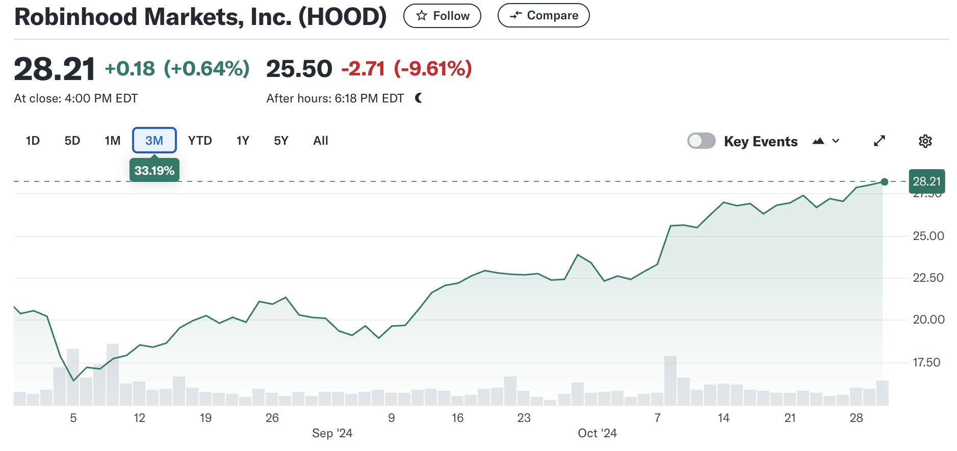Hoewel de crypto-inkomsten van Robinhood in 2024 gestaag zijn gedaald sinds enorme initiële successen, zijn de fundamenten van het bedrijf nog steeds sterk. Het winstrapport detailleerde een aantal bemoedigende statistieken: afnemende overhead, toenemende gebruikersbasis, grotere activa onder beheer, en meer. En natuurlijk is de aandelenprijs van het bedrijf gestaag gegroeid tijdens Q3.