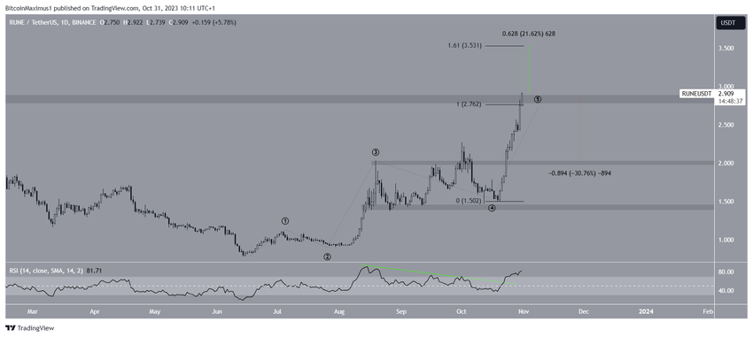 Als de telling juist is, zal de RUNE koers met nog eens 20% stijgen. De RUNE koers verwachting zal dan een prijs van $3,50 zijn.