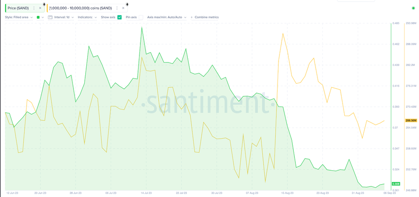 In de afgelopen week heeft een groep beleggers met 1 miljoen tot 10 miljoen SAND tokens zichtbare pogingen gedaan om een ommekeer onder $0,30 te voorkomen.