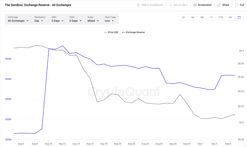 Tussen 3 en 6 september hebben Sandbox-beleggers 14 miljoen SAND-tokens naar exchanges verplaatst. Dit komt na bijna een maand van consistente opnames.