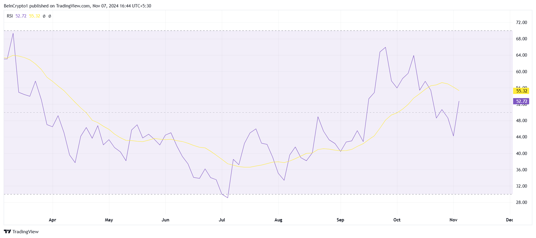 Vanuit technisch perspectief toont het macro-momentum van SEI gemengde signalen. De Relative Strength Index (RSI) bevindt zich momenteel boven de neutrale lijn van 50,0, wat wijst op enig bullish potentieel, maar het heeft nog niet een sterke positie boven deze drempel kunnen handhaven. Een stabiele positie boven 50,0 op de RSI zou een bullish trend bevestigen, wat een duidelijk teken zou zijn dat SEI kan blijven stijgen.