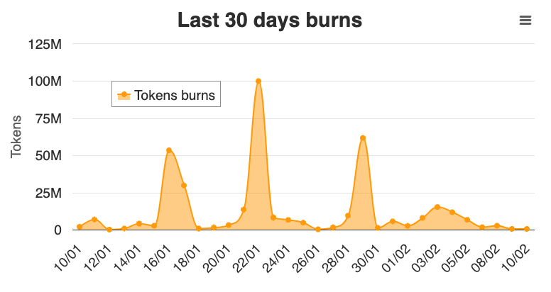 Shiba Inu token burns zijn ontworpen om de schaarste van de asset te vergroten en de impact van grote transacties tegen te gaan. Tot nu toe zijn er ongeveer 410 biljoen van de één quadriljoen voorraad SHIB tokens naar drie burn wallets gestuurd. De dagelijkse Shiba Inu burn rate bereikte de afgelopen maand een piek van 100 miljoen tokens.