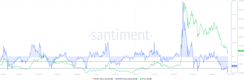 De MVRV-ratio beoordeelt de winst en het verlies van investeerders. Op dit moment staat de 30-daagse MVRV van Shiba Inu op -14,5%, wat wijst op verliezen, wat kan leiden tot koopdruk.