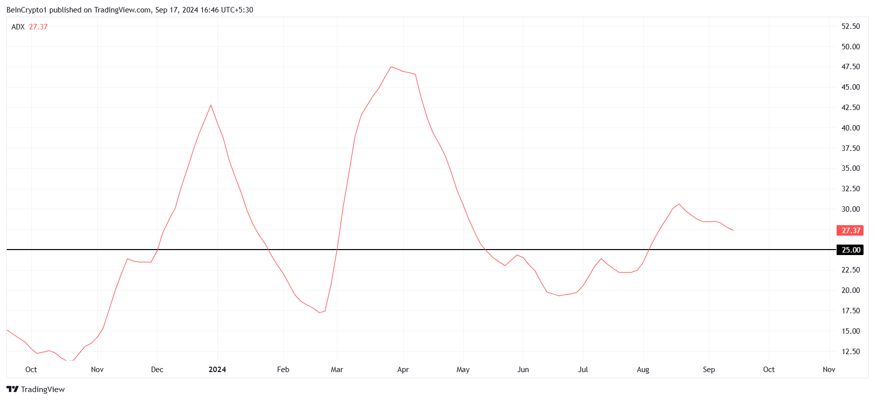 Zodra de ADX onder de drempel van 25,0 valt, zou Shiba Inu een kans kunnen zien voor herstel. De afnemende kracht van de bearish trend zou de nodige voorwaarden kunnen bieden voor SHIB om opwaartse momentum terug te winnen en mogelijk uit zijn huidige handelsbereik te breken.