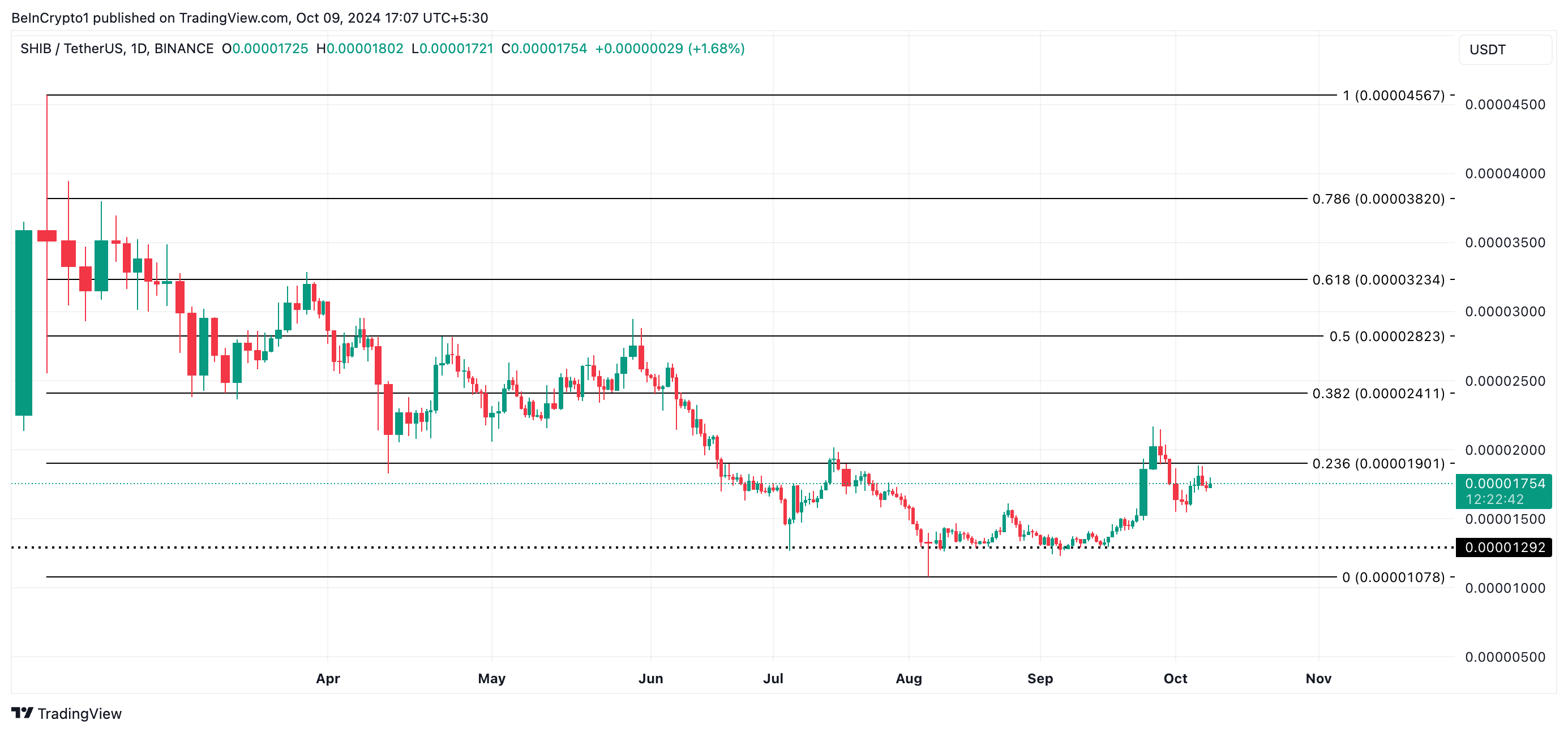 Daarom, als deze investeerders beginnen te verkopen, kan de koers van SHIB enkele van zijn recente winsten verliezen en dalen naar steun op $0,000012. Als dit niveau niet standhoudt, kan de koers van de meme coin dalen naar zijn laagste punt op 5 augustus van $0,000010.