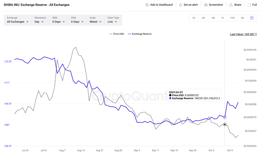 Dit betekent dat investeerders in minder dan een maand 2 biljoen SHIB tokens naar crypto exchanges hebben verplaatst.