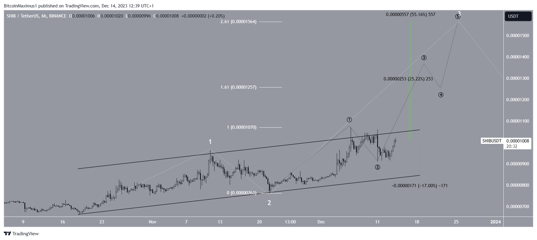 Het zes-uur tijdframe geeft vanwege de wave count een bullish Shiba coin verwachting.